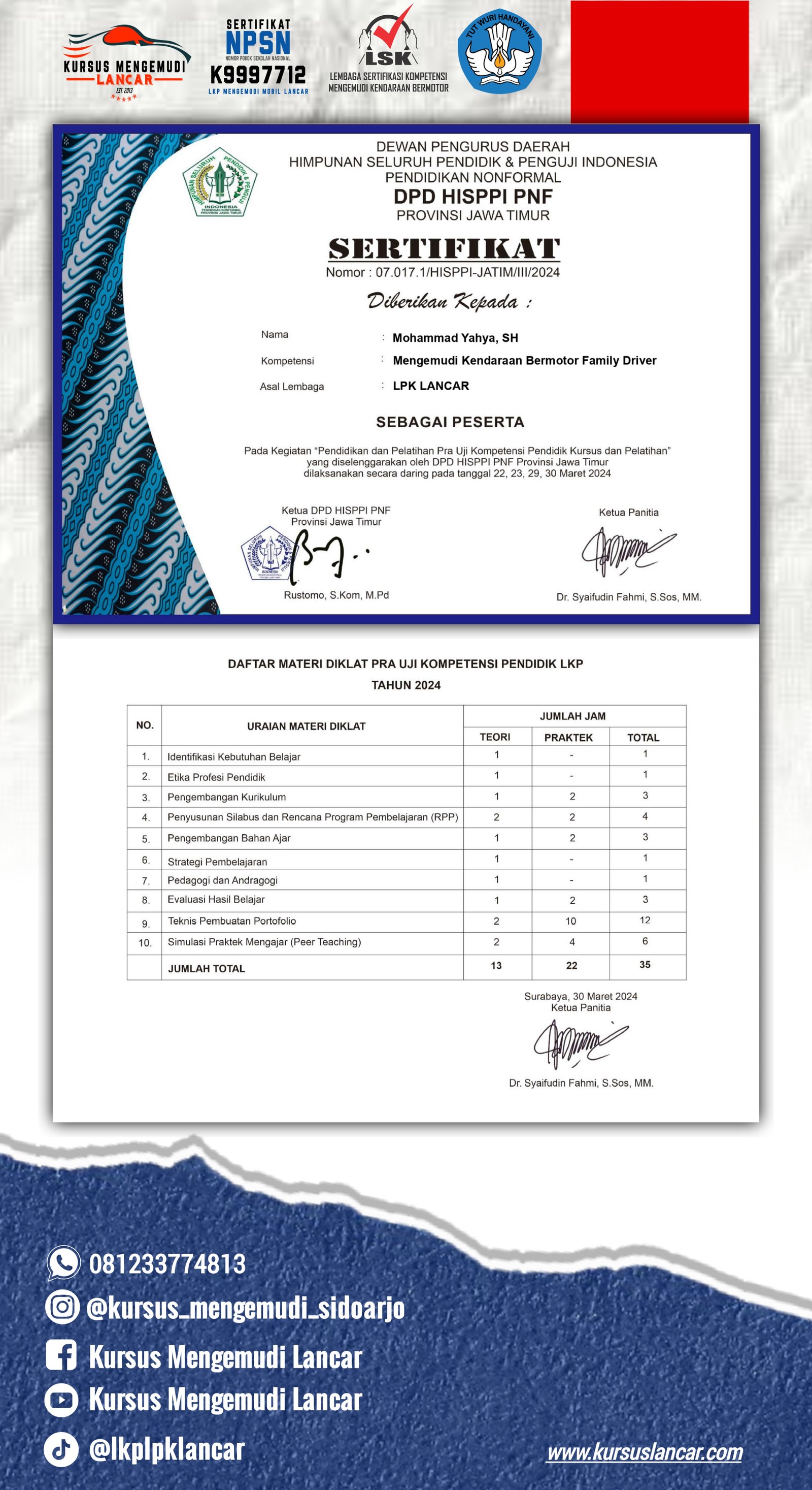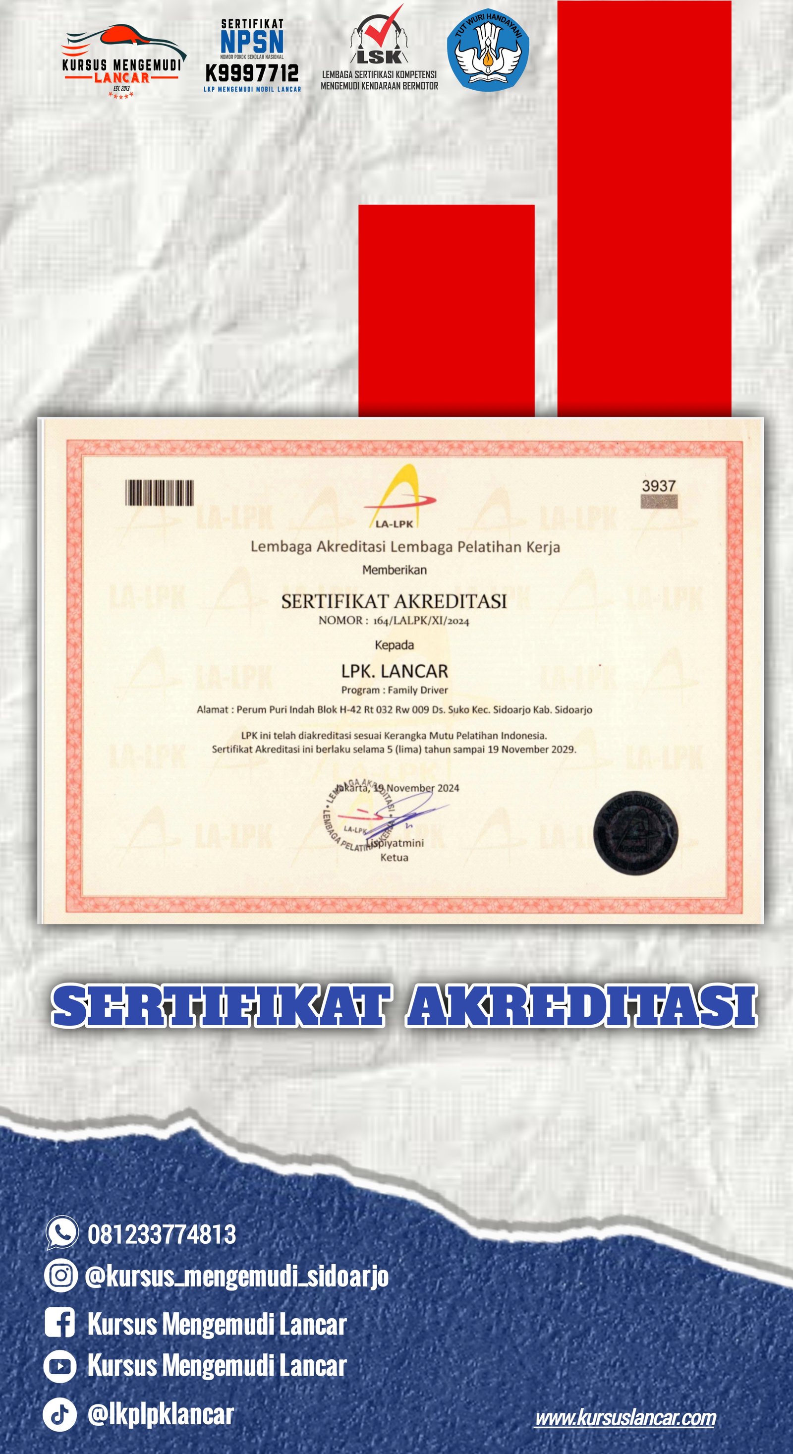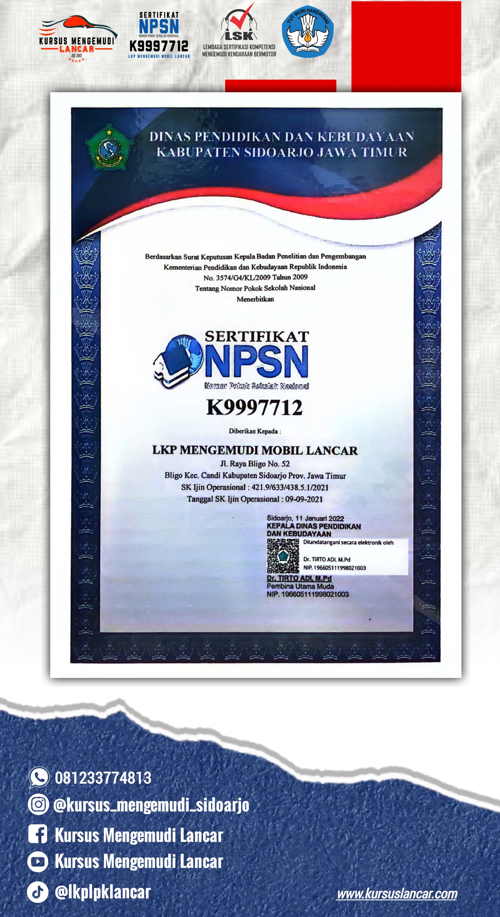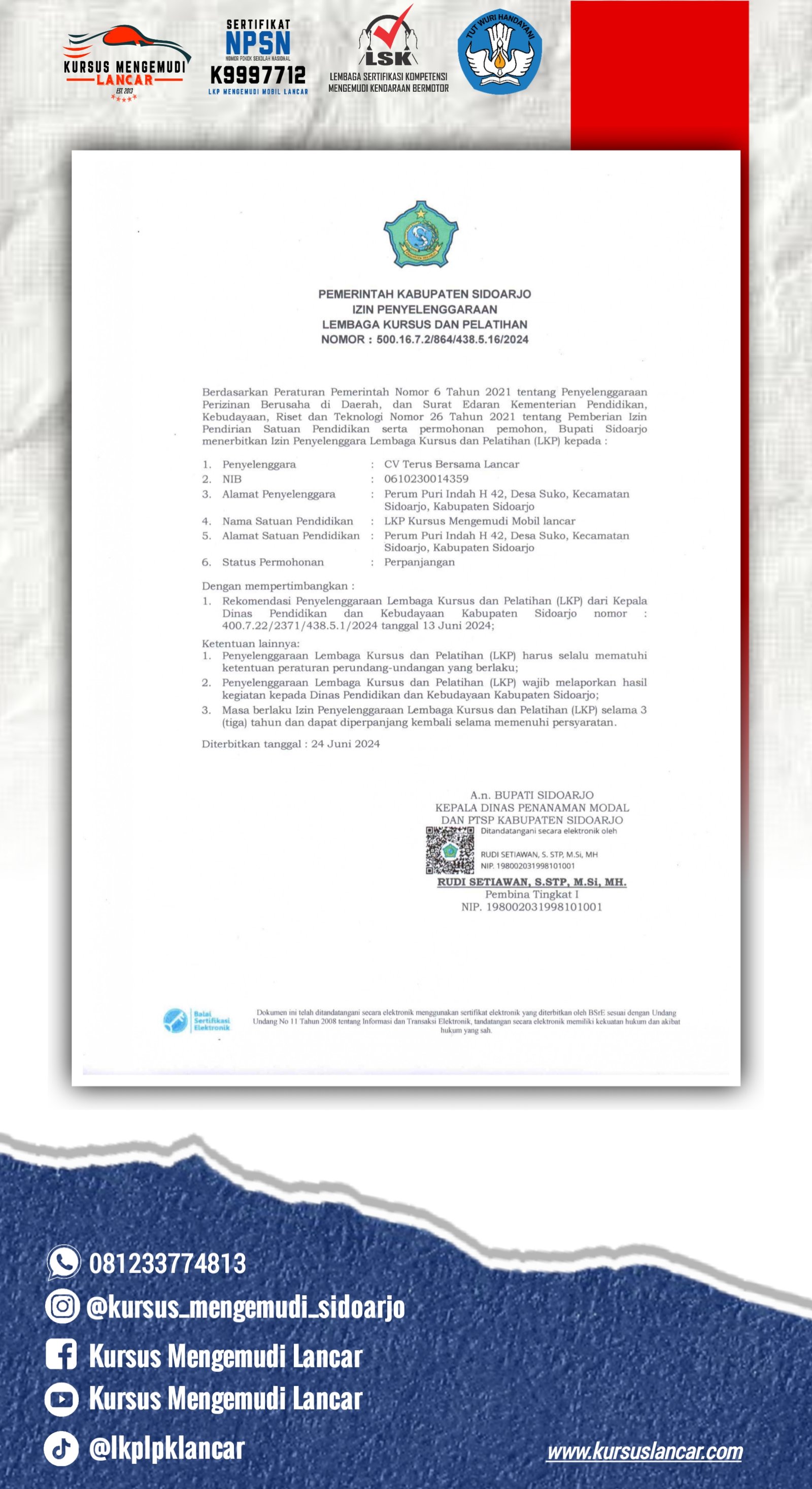 Berikut adalah beberapa perizinan dan sertifikat yang kami miliki