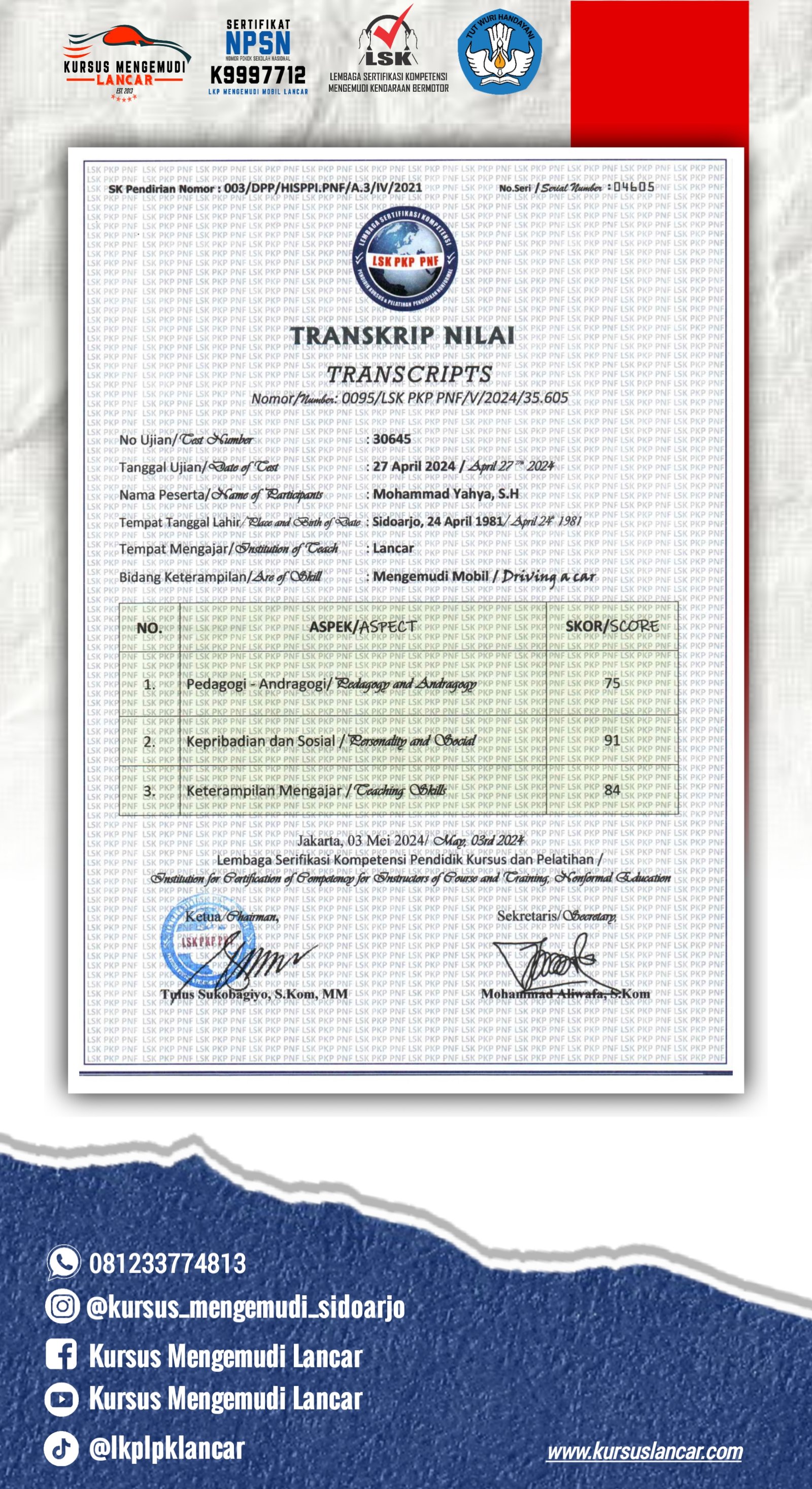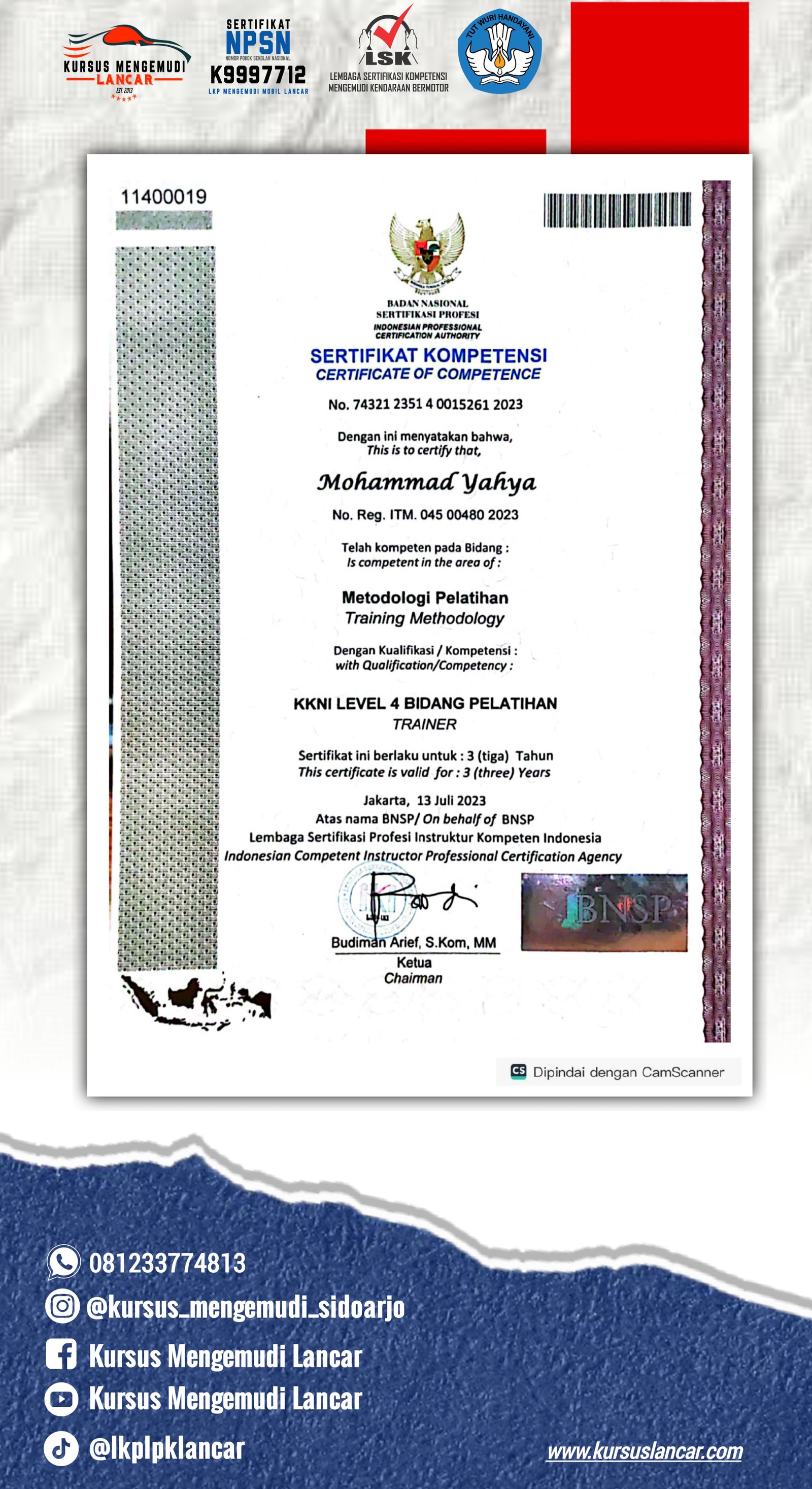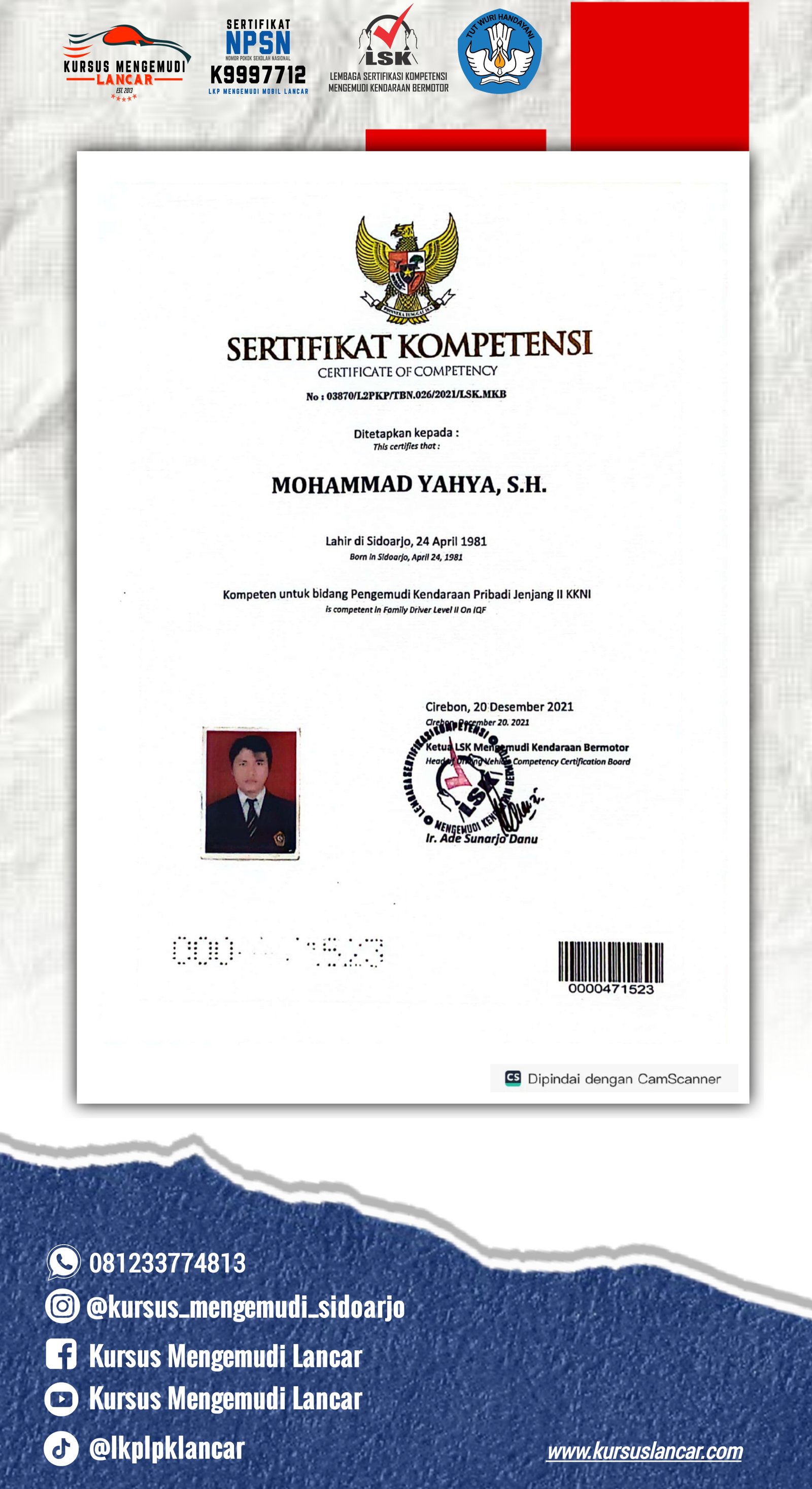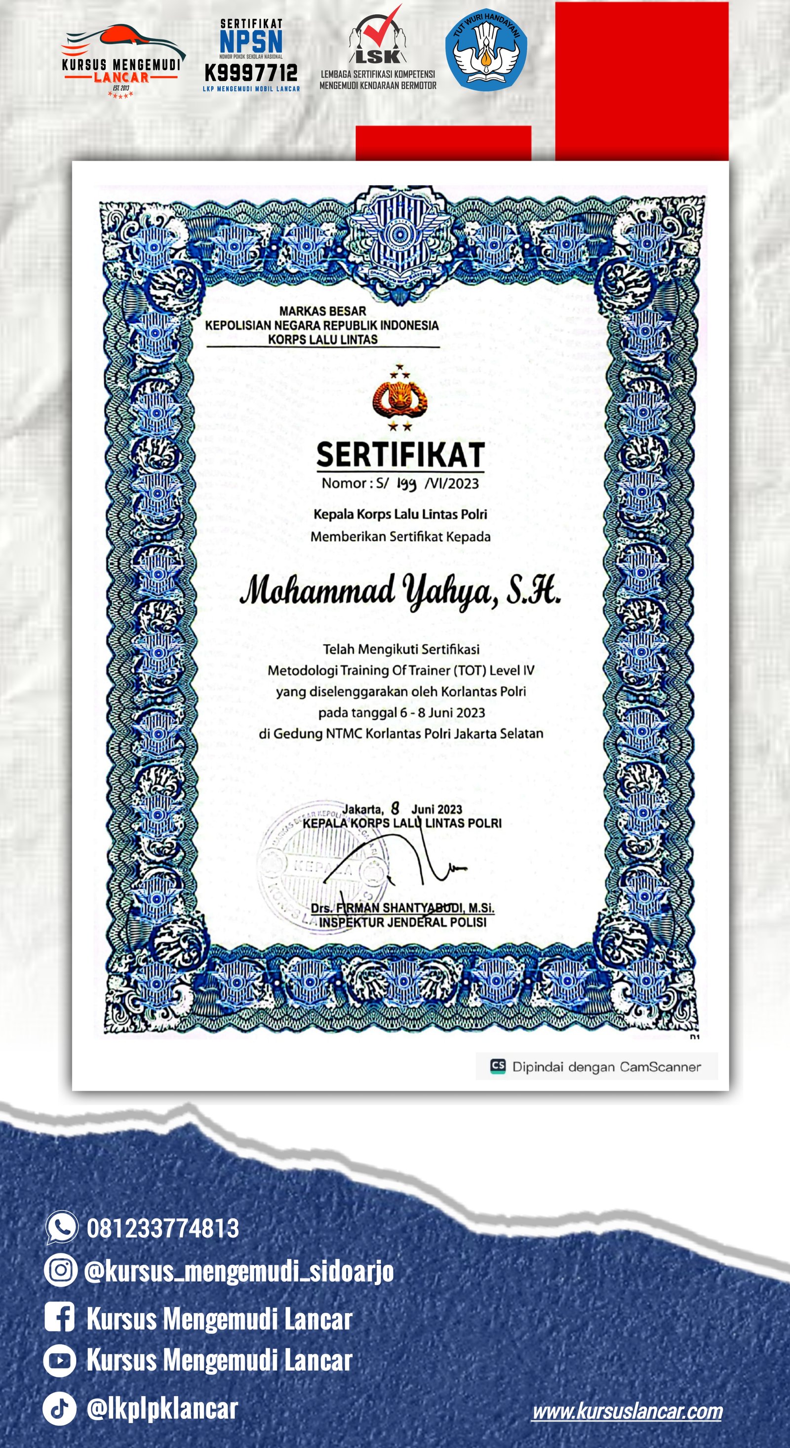 Berikut adalah beberapa perizinan dan sertifikat yang kami miliki